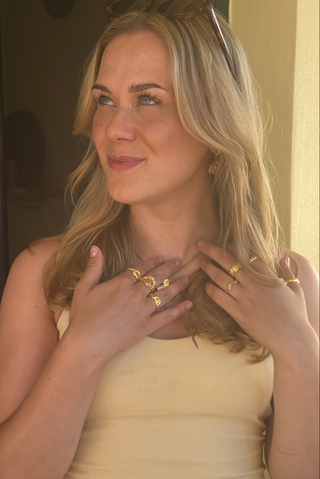 Organiske strukturoverflader, der skaber en dynamisk dimension til dit personlige udtryk. Det er vigtigt for os, at en ring både kan være fin og feminin samt rå og chunky. Derfor har vi sørget for, at du kan skabe lige det look, du ønsker. Se de udvalgte ringe nedenfor.
