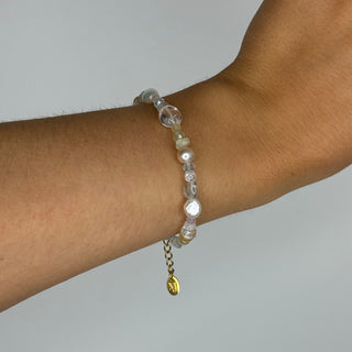 Ferskvandsperler i rosa, lavendel perlemor og elfenbenshvid