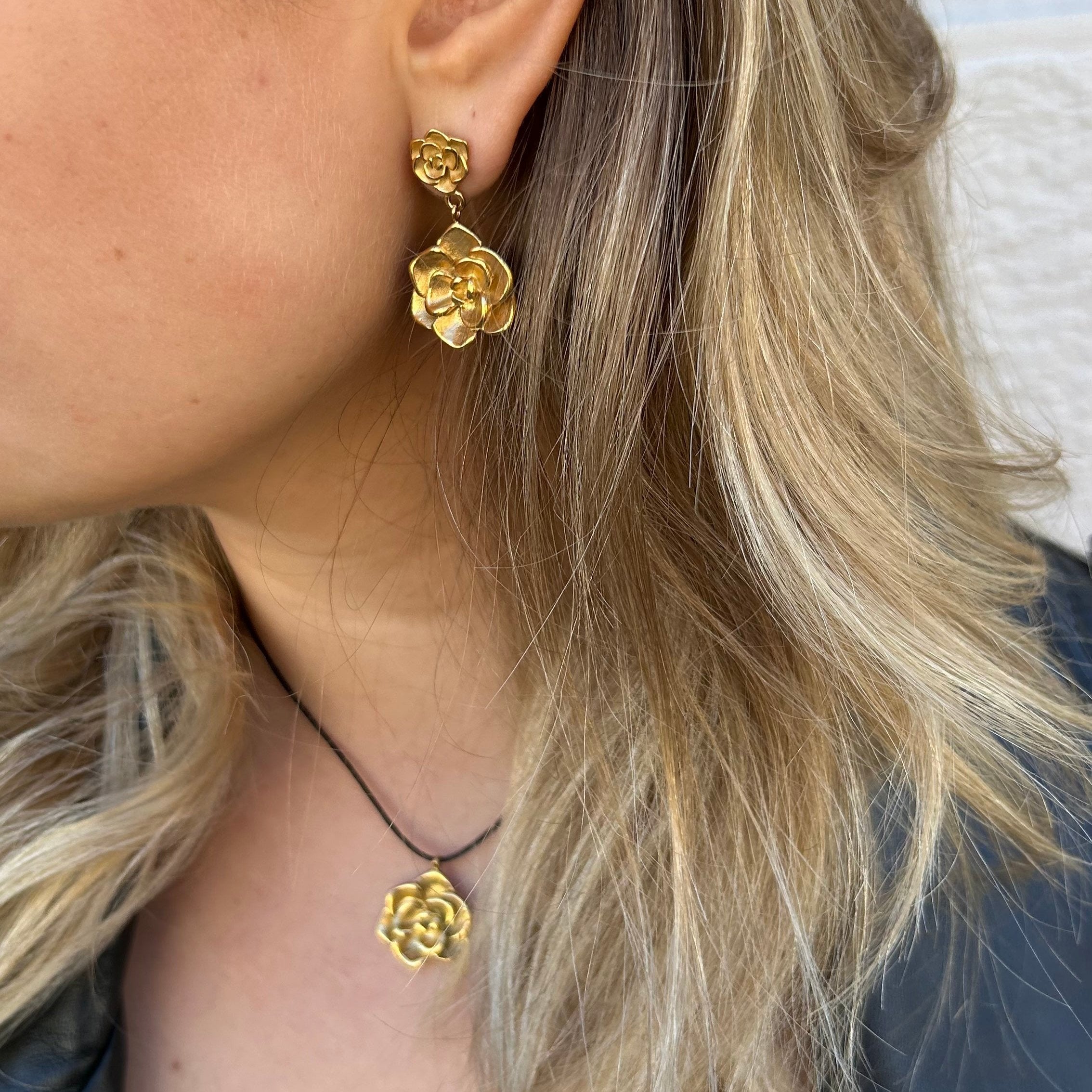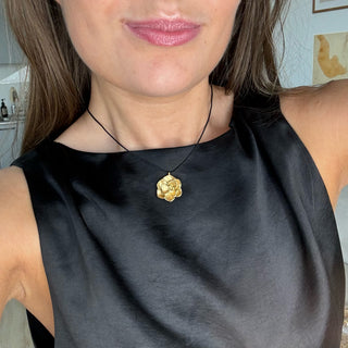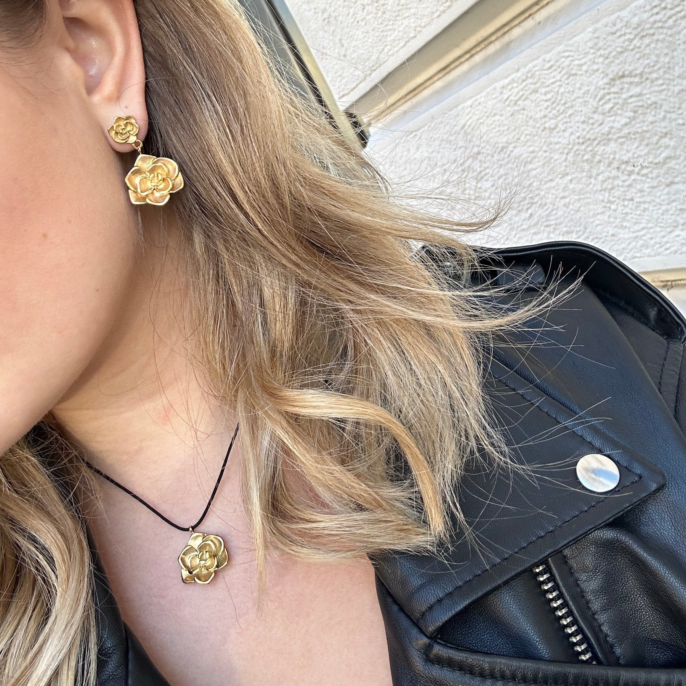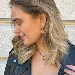 Poleret rustfrit stål, belagt med 18 karat guld + e-coating. Smykkerne er nikkelfri og blyfri, jvf. dansk lovgivning. Smykket kan tåle vand, sved og parfume.