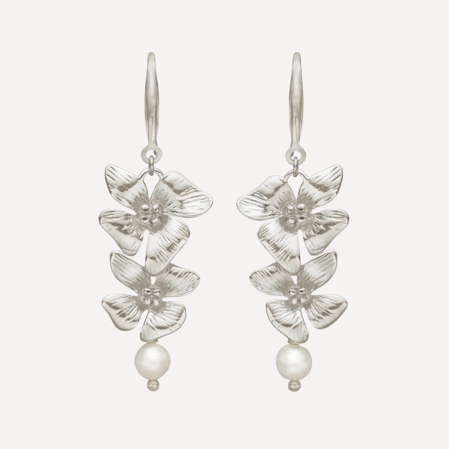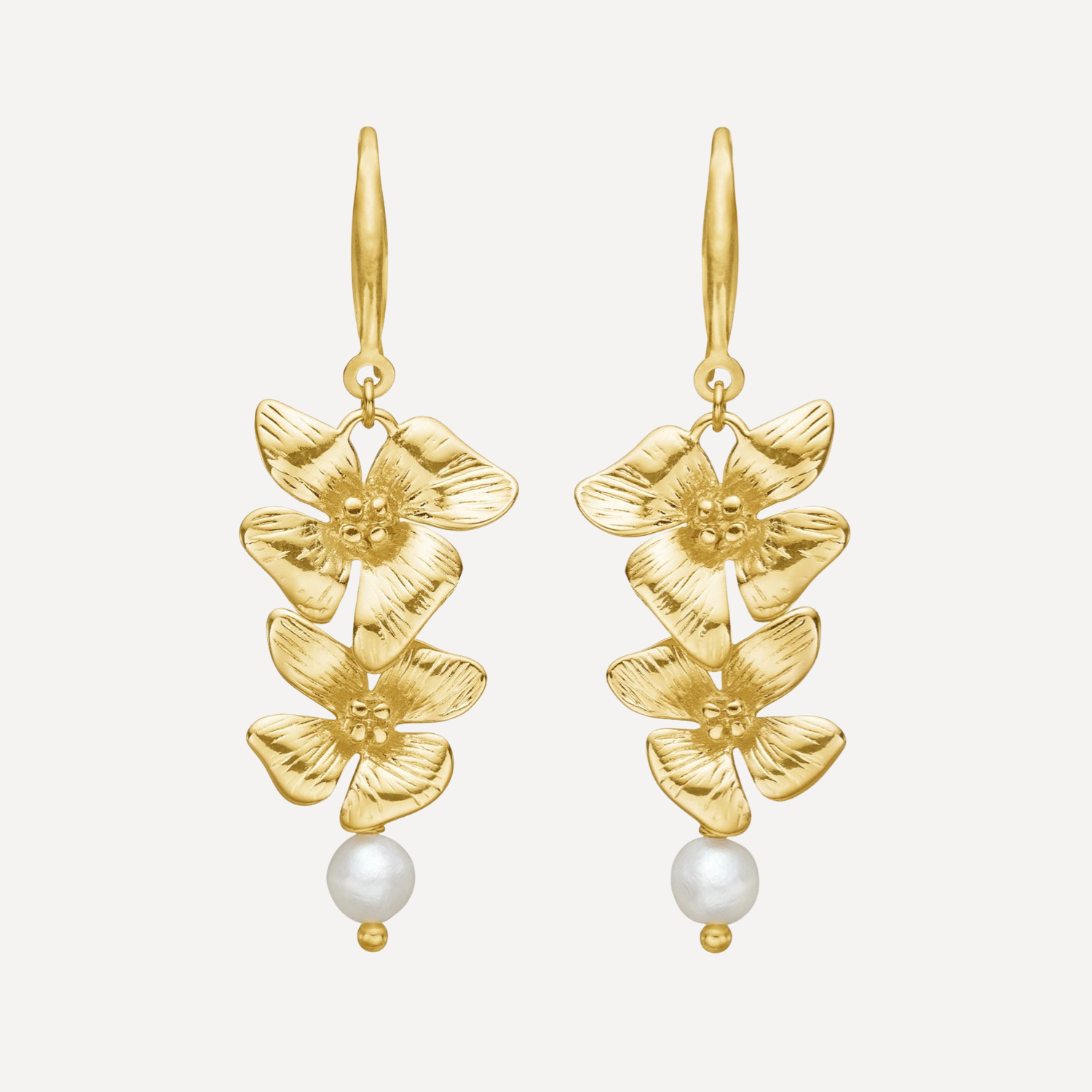 Ørekrogene er fremstilet i 18K forgyldt-/sterlingsølv 925 med bladformede vedhæng i forglydt- og sølvbelagt messing. Smykkerne er nikkelfri og blyfri, jvf. dansk lovgivning.