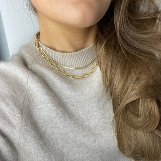 Poleret rustfrit stål, belagt med 18 karat guld + e-coating. Smykkerne er nikkelfri og blyfri, jvf. dansk lovgivning. Smykket kan tåle vand, sved og parfume.