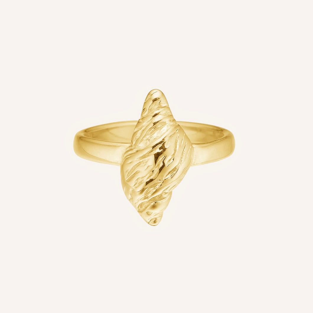 Poleret rustfrit stål, belagt med 18 karat guld + e-coating. Smykkerne er nikkelfri og blyfri, jvf. dansk lovgivning. Smykket kan tåle vand, sved og parfume.