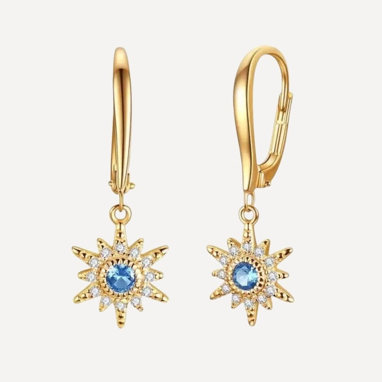 Et elegant og feminint design bestående af de fineste koral blå stjernevedhæng. Et smukt symbol på håb og ny virtalitet. Vedhænget er fremstillet af en lyseblå facetsleben kubisk zirkonia sten, omringet af små hvide zirkonia sten. De funklende zirkonia sten, giver et feminint og fængende strejf. Desuden har øreringene en smuk fransk øreringskrog, som tilføjer et strejf af romantik. Ideel til en du holder af, eller som gave til dig selv.