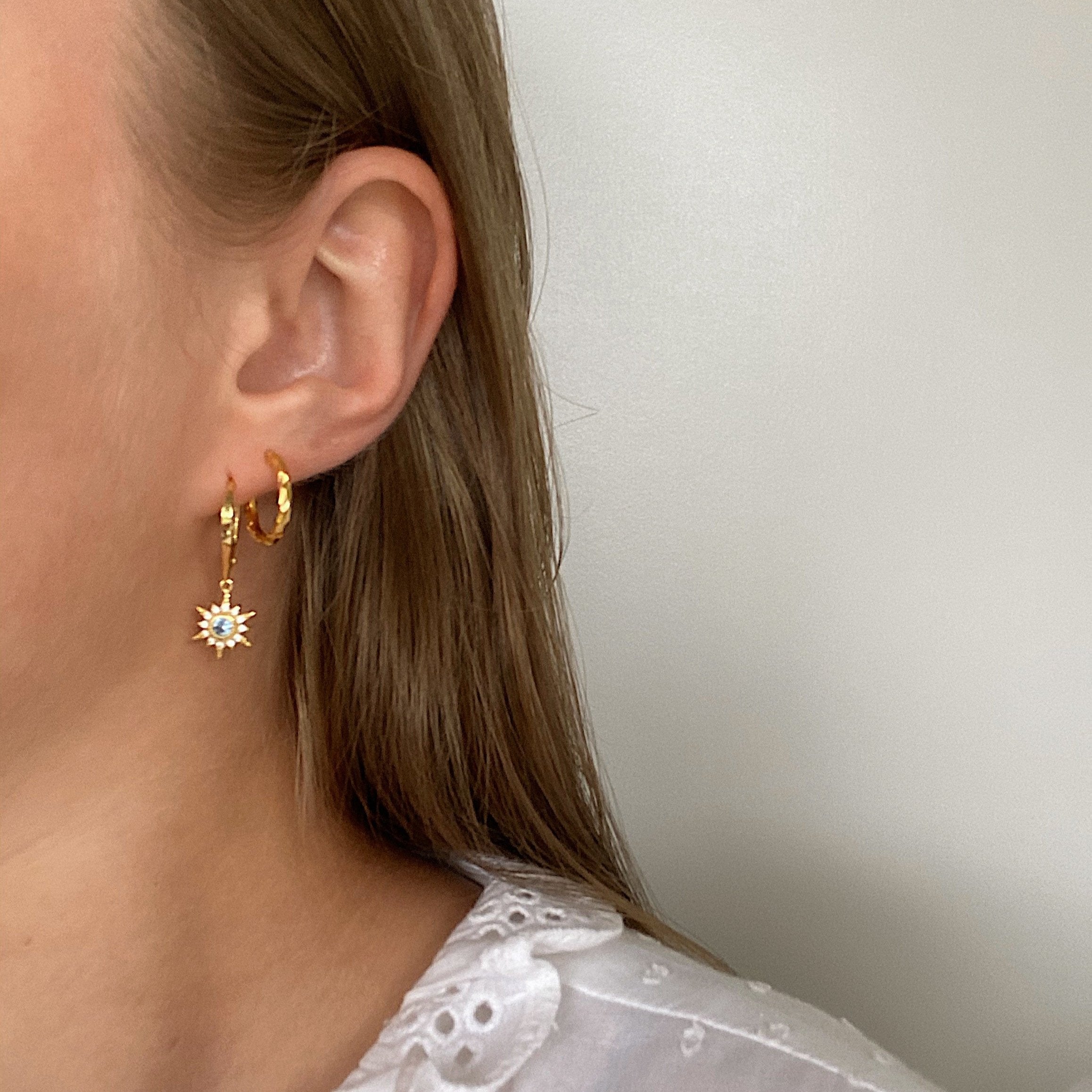 Øreringene er stemplet med S925, og er kun tilgængelige i guldbelagt.