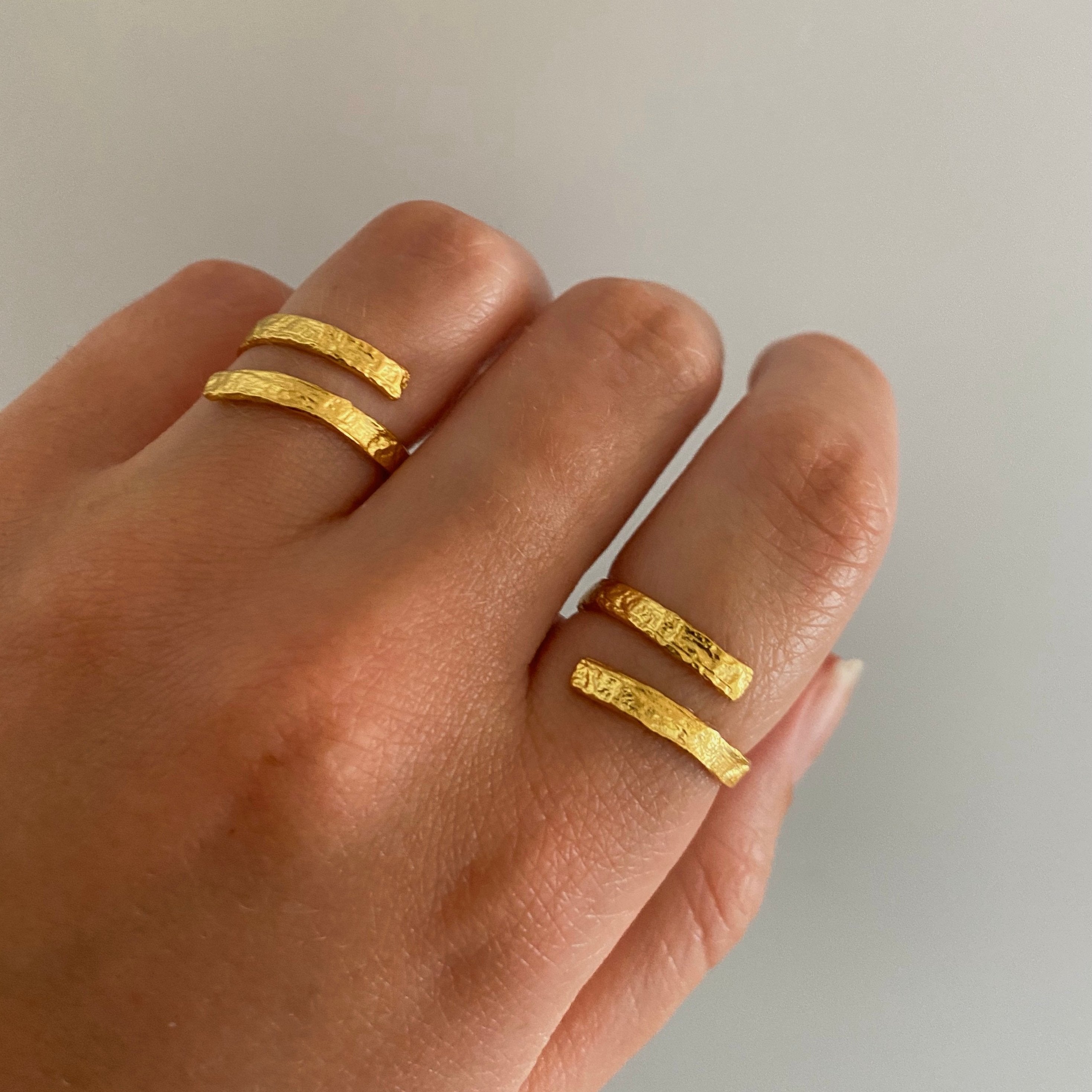 Elegant og feminin ring, med et organisk og rå look. Ringen er simpel og er utrolig smuk i sit udtryk. Dens spil af forskellige kanter, former og fordybniger, gør ringen helt særlig.