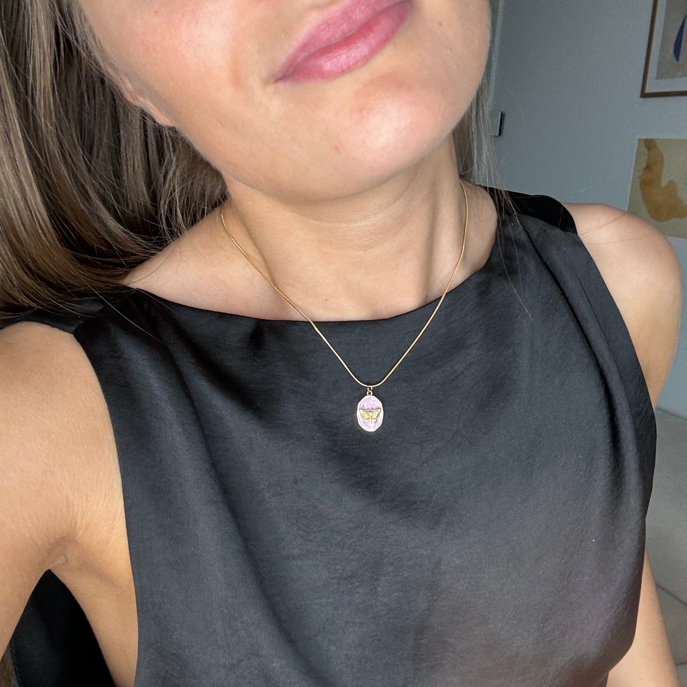 Halskæden måler 39cm (+5cm forlængerkæde)
