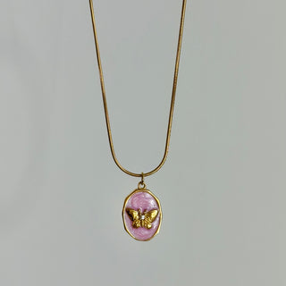 Poleret rustfrit stål, belagt med 18 karat guld + e-coating. Smykkerne er nikkelfri og blyfri, jvf. dansk lovgivning. Smykket kan tåle vand, sved og parfume.