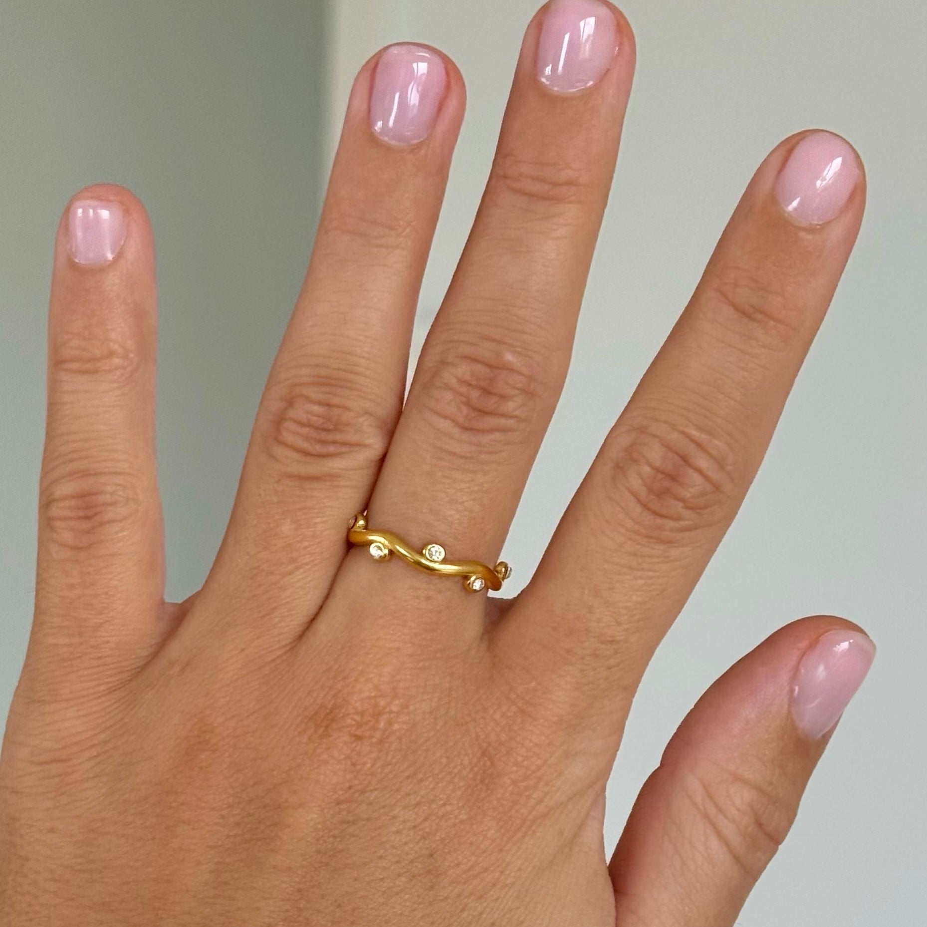 Ringen er justerbar (onesize) og kan passes på flere fingre.