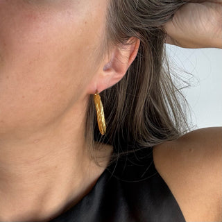 Poleret rustfrit stål, belagt med 18 karat guld + e-coating. Smykkerne er nikkelfri og blyfri, jvf. dansk lovgivning. Smykket kan tåle vand, sved og parfume.