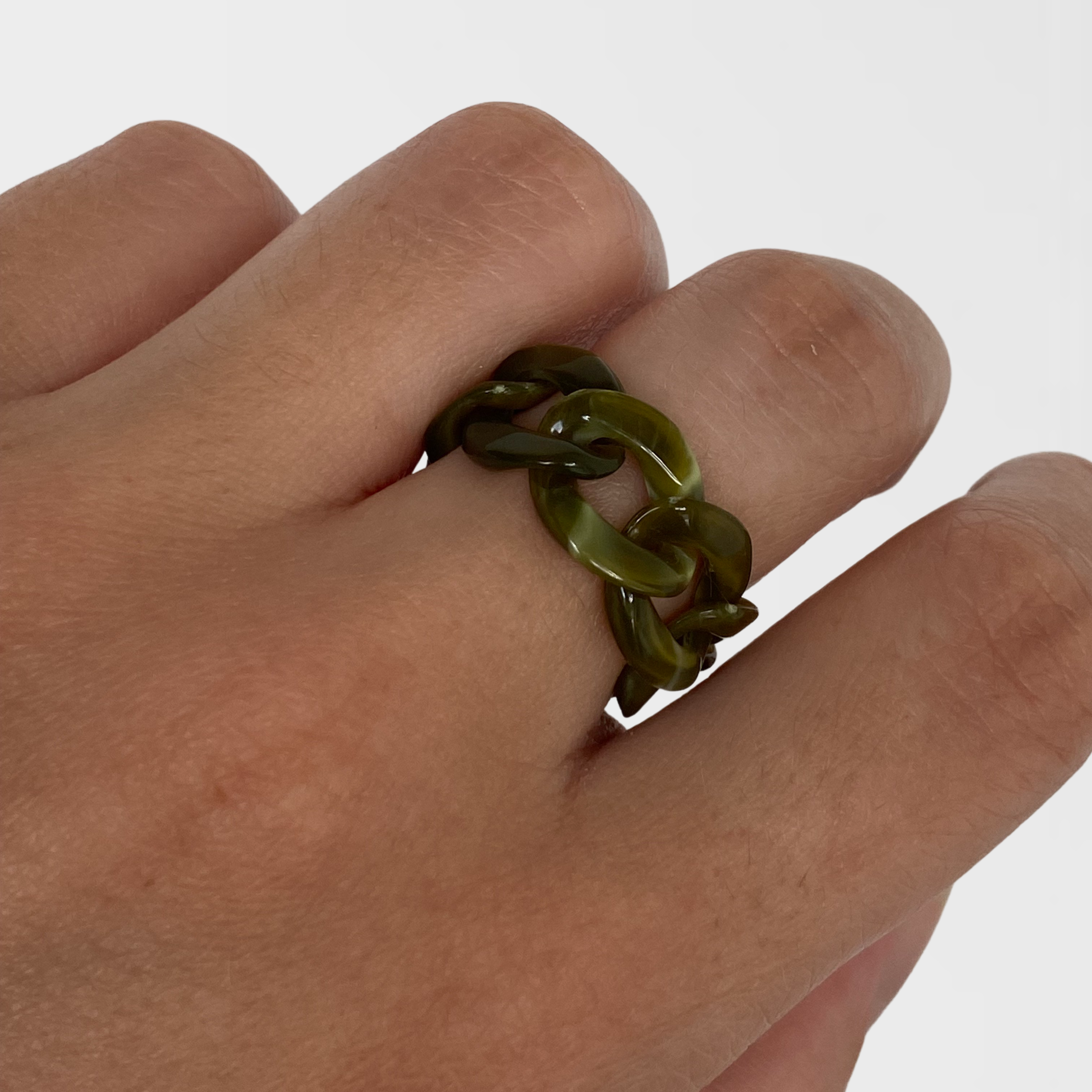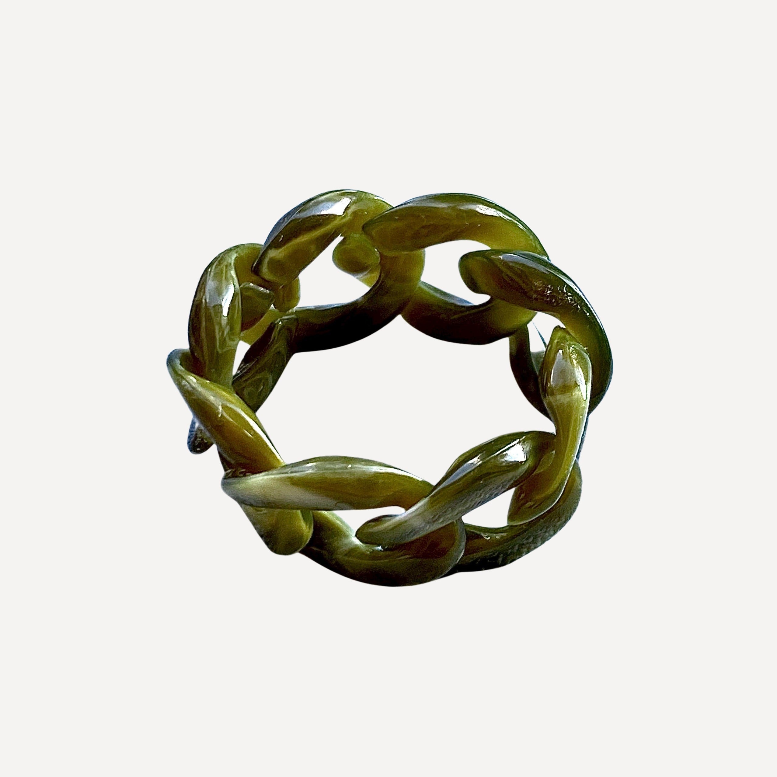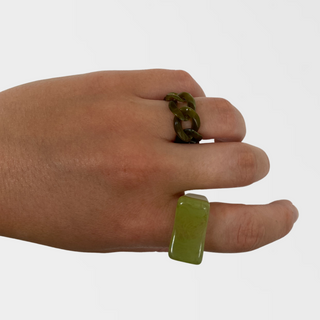 Mix og match vores chunky ringe, og skab dit eget unikke look. Ringene har bløde afrundede former og er tilgængelige i smukke afdæmpede nuancer af beige, hvid, grøn og perlemor. Perfekte i kombination med hinanden, eller i sammensætning med smykker du ejer i forvejen.Størrelse: Onesize (52/53)