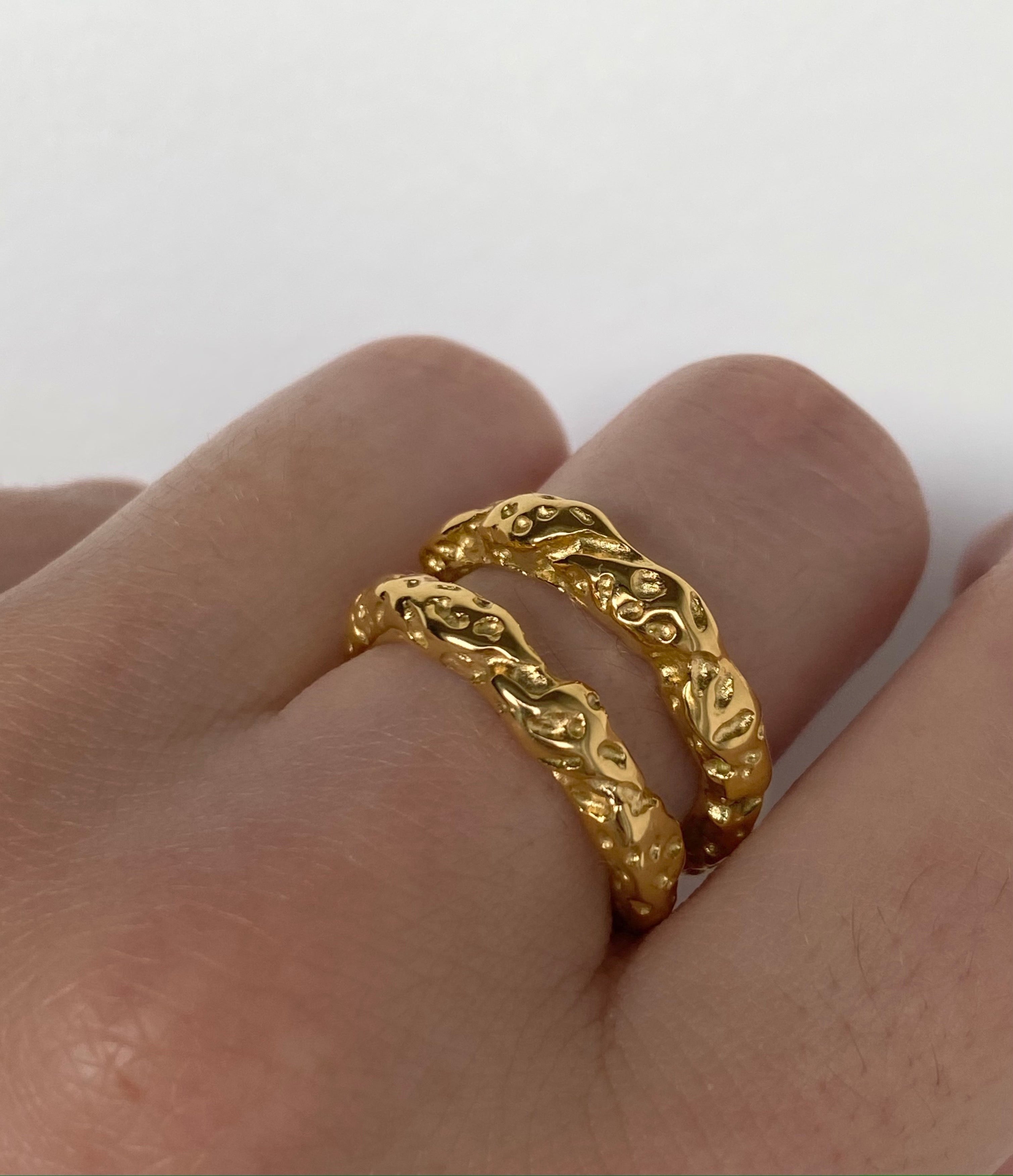 Rustfrit stål, belagt med 18 karat guld + e-coating. Smykkerne er nikkelfri og blyfri, jvf. dansk lovgivning. Smykket kan tåle vand, sved og parfume.